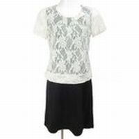 ソニアリキエル SONIA オフ白 レース 黒 半袖 ワンピース ひざ丈ワンピース