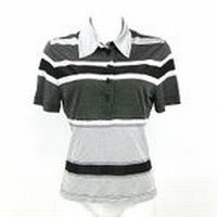 ドンナエレ(DONNNAerre)黒×白半袖ポロシャツ。 柔らかく薄い素材感と程よい透け感が涼しげなポロシャツが 入荷致しました。 大きなストライプに細かなドットがアクセントになっている一枚☆ モードに着こなしたいですね♪ 所々引っかき傷がございます。。 着丈約55cm袖丈約20cm肩幅約38cmバスト約86cm 【サイズ】:(46) 【素材】:(レーヨン 100%) 【色】:(黒×白) 【程度】:(AB) 20101101-014 299 011