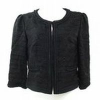 コンパクトな薄手のジャケットは季節の変わり目に便利です♪ お顔がすっきり見えるノーカラーデザイン。 キレイめなボトムと合せてオフィス着にも、デニムなどと合せてオフにも使える優れもの。 シックな黒にラメ糸の輝きが存在感たっぷり♪さらっと羽織るだけでお洒落です。 状態の良いお品ですので、この機会にぜひどうぞ! 着丈約44cm 袖丈約40cm 肩幅約35cm バスト約86cm 【サイズ】:(38) 【素 材】:(キュプラ67%・ナイロン23%・コットン10% 別布部分 ポリエステル100% 裏地 ポリエステル100%) 【 色 】:(黒) 【程 度】:(A) 2507-20140516-010 409 003