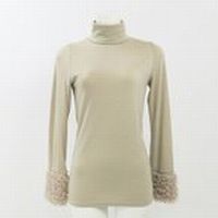 袖のもこもこファーが可愛いアイテムです。 薄手のストレッチカットソー生地で着心地も◎ 重ね着スタイルにも重宝しますよ。 落ち着きのあるベージュですのでお上品な着こなしになります。 ネックやウエストなどを中心に毛羽立ちがみられます。 着丈約65cm 袖丈約60cm 肩幅約30cm バスト約80cm 【サイズ】:(02) 【素 材】:(ポリエステル 75% レーヨン 19% ポリウレタン 6%(ボア ポリエステル 100%)) 【 色 】:(ベージュ) 【程 度】:(AB) 2538-20131111-005 499 013