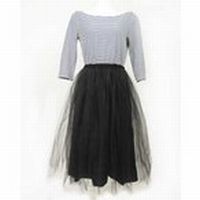 ジルスチュアート 白黒ボーダー×黒チュールワンピース 2 ひざ丈ワンピース 長袖