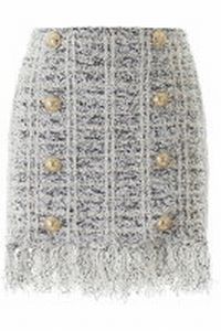 BALMAIN バルマン ショートスカート NOIR BLANC Balmain fringed tweed mini skirt レディース 春夏2020 TF14032K037 ik ボトムス