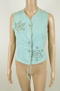 95%OFF 新品 訳あり ジモス GIMOS ジャケット 40 LJK693 Mサイズ エメラルドグリーン レディース ベストジャケット レザー ビーズ イタリア製