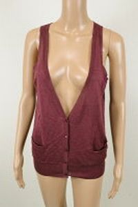90%OFF 新品 ストラスブルゴ STRASBURGO ニットベスト 38 LKN862 Mサイズ ワイン レディース ジレ 前ボタン 麻×シルク 春夏